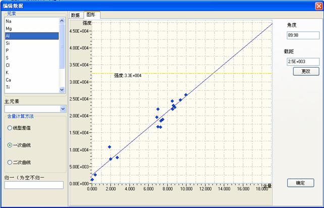 接下来运用EDX 3600B型对铝矿标准样GSR-5事实检查的得出的谱图,目标直线等相干数据文件: