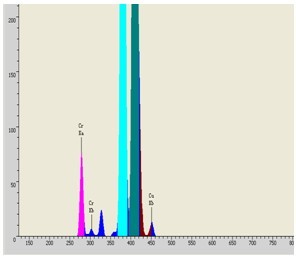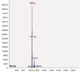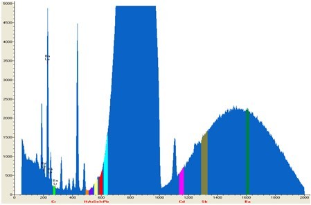 调控EDX 9000C检测设备对小轿车配件网钢化玻璃试品抵御检验,检验期间1秒,其检验谱图和统计数据接下来图: