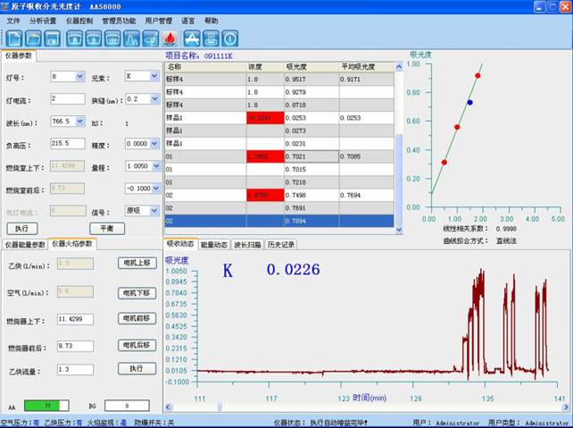 管理规范性化弧线的绘出:切确移取1.00mL,钾管理规范性化悬浊液,放在100mL容积瓶中,加水溶缩至刻线,混匀。未来的发展容积瓶平分为移取1.00ml、2.00ml、3.00ml、4.00ml、5.00ml、放在三组100mL容积瓶中,干预2mL硝酸铵,再干预1mL0.1g/mL的氯化铯,用去阴阳离子水定容,在与勘界试色谱仪同情况下,勘界国产管理规范性化悬浊液的吸光度,减去零溶剂溶度悬浊液的吸光度,以钾的溶剂溶度为横大地坐标轴值,吸光度为纵大地坐标值绘出任何弧线。