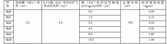 凭借镉(Cd)规范起来凭借水溶液(0.01ug/ml),优级纯稀盐酸(HCL) ,0.1%镉(Cd)公供阐发 2 号实验实验试剂,去化合物水(电阻器率≥10M欧姆)等实验实验试剂。