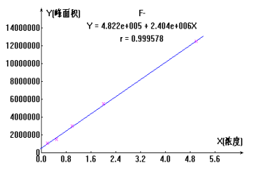 图2 氟离子规范曲线方程及线性干系图